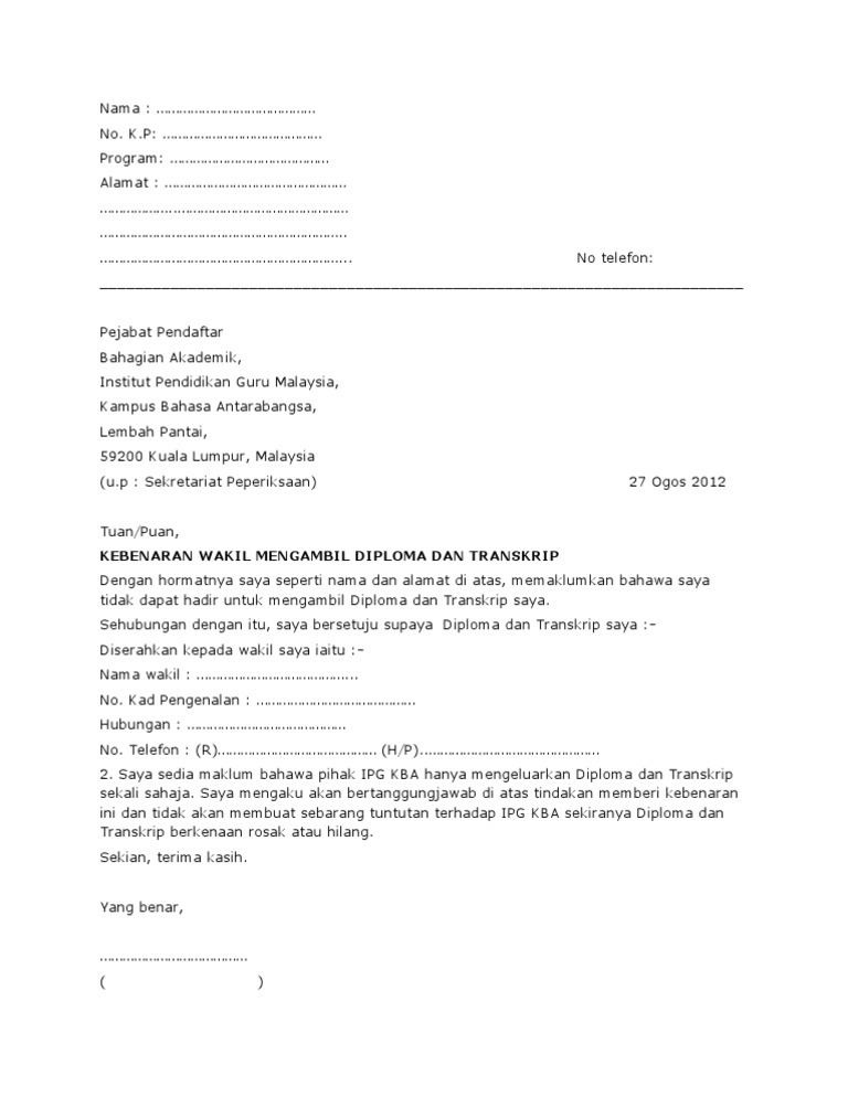 Contoh Surat Kebenaran Kepada Wakil Pdf